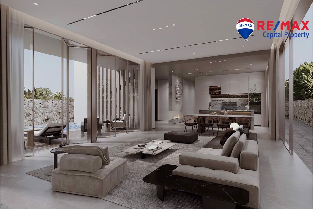 This fully furnished home sits on a 266 sqm land plot and offers an impressive 362 sqm of interior living space. It features 4 spacious bedrooms and 5 modern bathrooms, including ensuite bathrooms in every bedroom. The open-plan living area is bright and spacious, with a stylish European kitchen, comfortable lounge zones, and direct access to the private swimming pool and garden area.