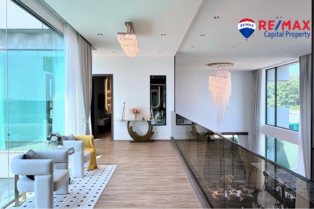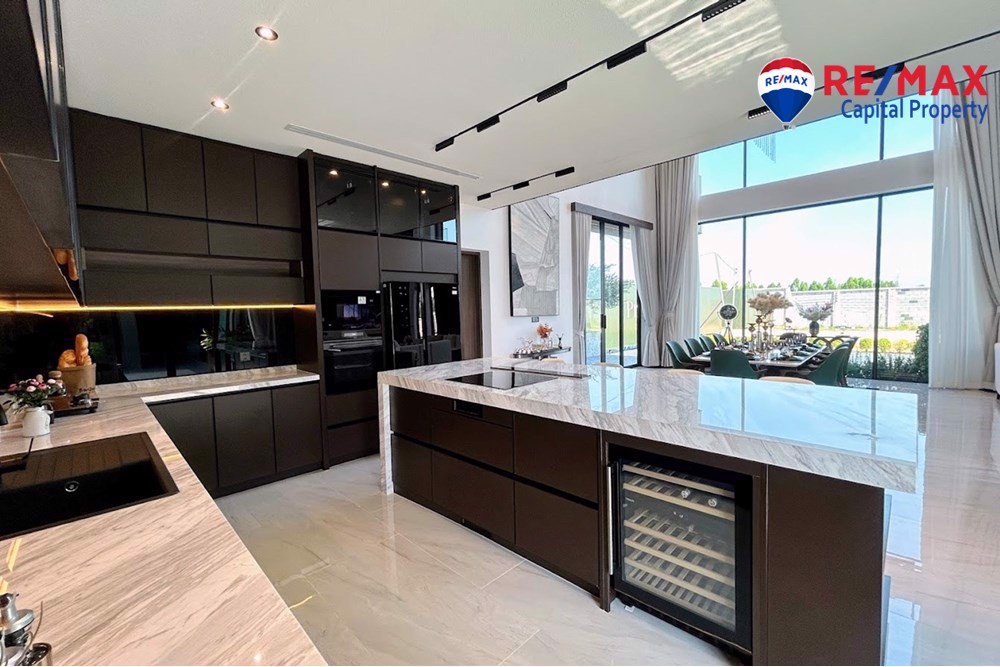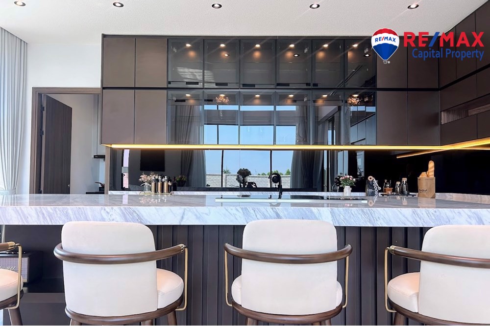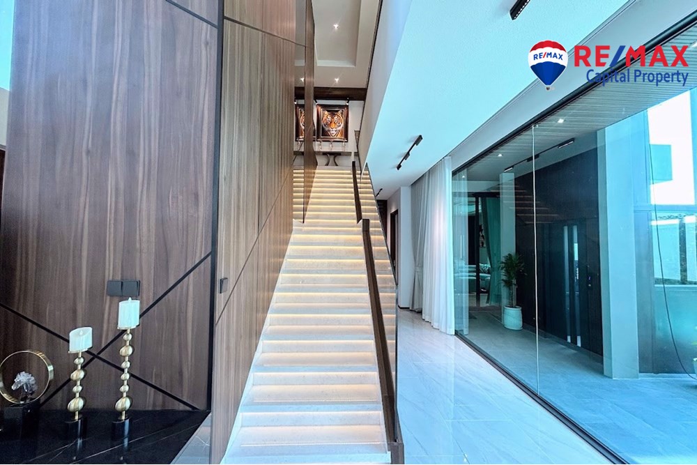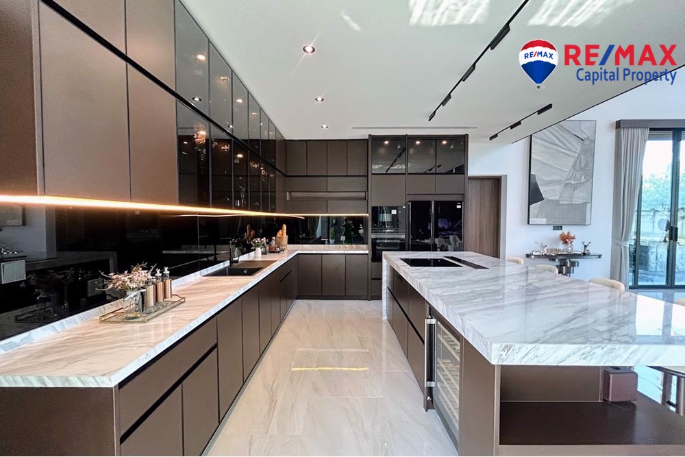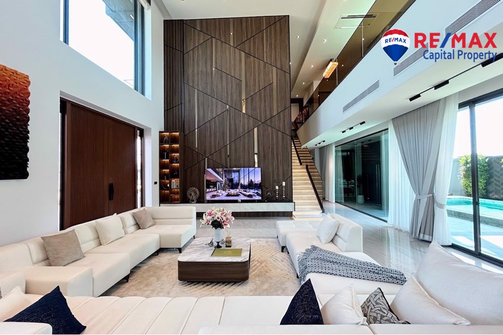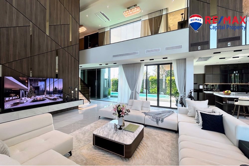 Built on 825.35 sqm of land with 568 sqm living area, the villa features 5 bedrooms (1 downstairs), 6 bathrooms, and a maids room with bathroom. The stunning 7-meter high ceiling and open-plan layout create a bright and spacious atmosphere throughout the home.