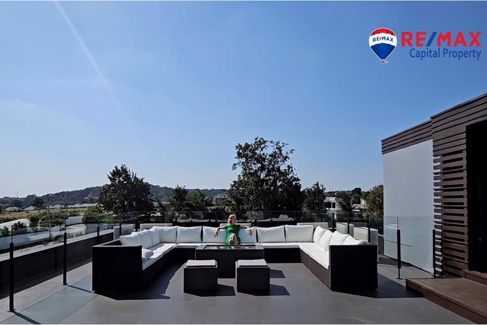 A private home elevator connects all floors, including the impressive rooftop garden with 360-degree panoramic views perfect for relaxing or entertaining.