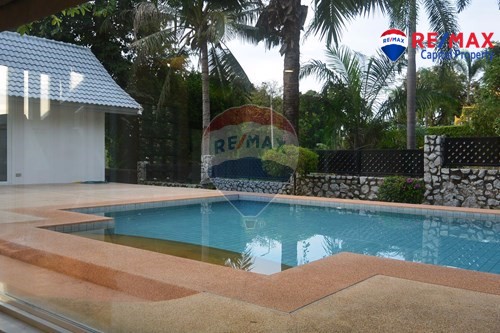 Stunning two-story pool villa sitting on a spacious 800 sqm land plot with its private swimming pool, wonderful garden, covered terrace and sala and car port! The house offers a comfortable 350+ square meters living area with its spacious and airy living room, beautiful dining area, and stunning European kitchen! Entirely recently renovated, no efforts have been spared to transform the house into a stunning luxury pool villa you will instantly fall in love with when entering! You will love its vibe, its modern, elegant, and sleek interior design with sliding glass doors all along the living area, opening on the superb garden and your private pool!
